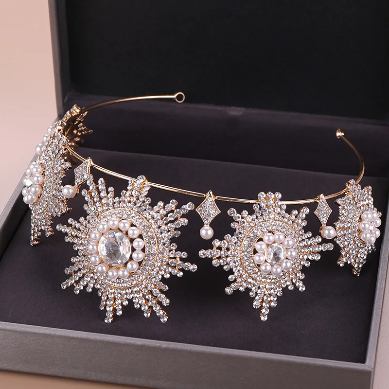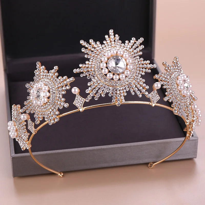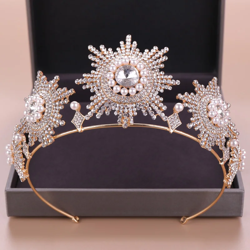 Product Name: Imitacja pereł Rhinestone duża korona moda luksusowy kryształ diadem i korony królowa kobiety biżuteria do włosów ślubne akcesoria do włosów
