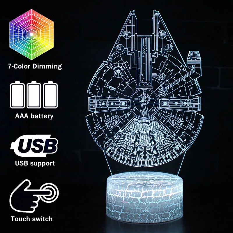 Product Name: 3D illusion LED lampki nocne Darth Vader mistrz Yoda Millennium Falcon Model dotykając lampy seria gwiezdnych filmów wojennych lampki nocne
