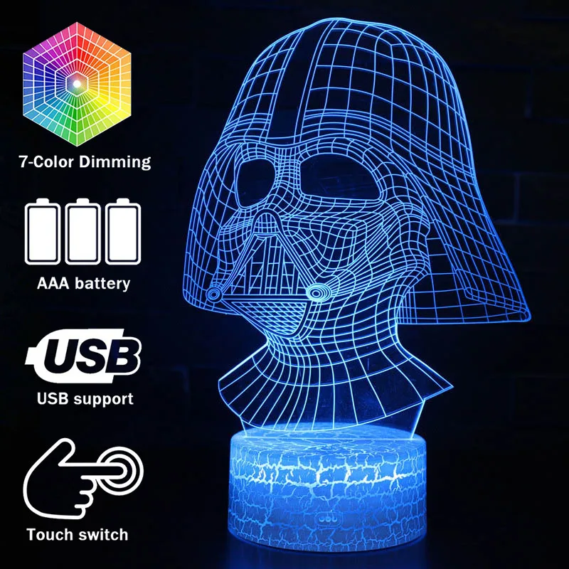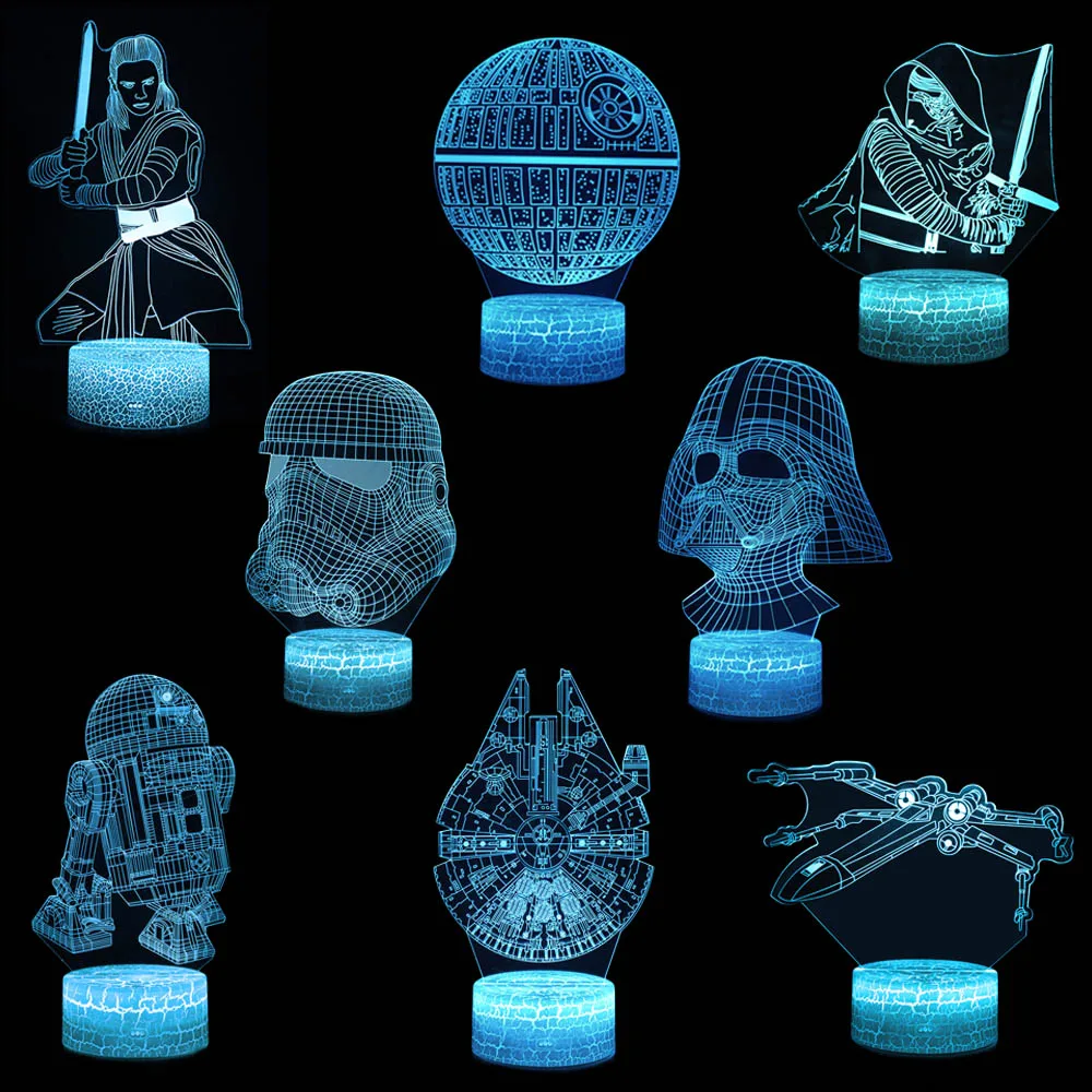 Special Offer 3D illusion LED lampki nocne Darth Vader mistrz Yoda Millennium Falcon Model dotykając lampy seria gwiezdnych filmów wojennych lampki nocne Discount 10% Today!