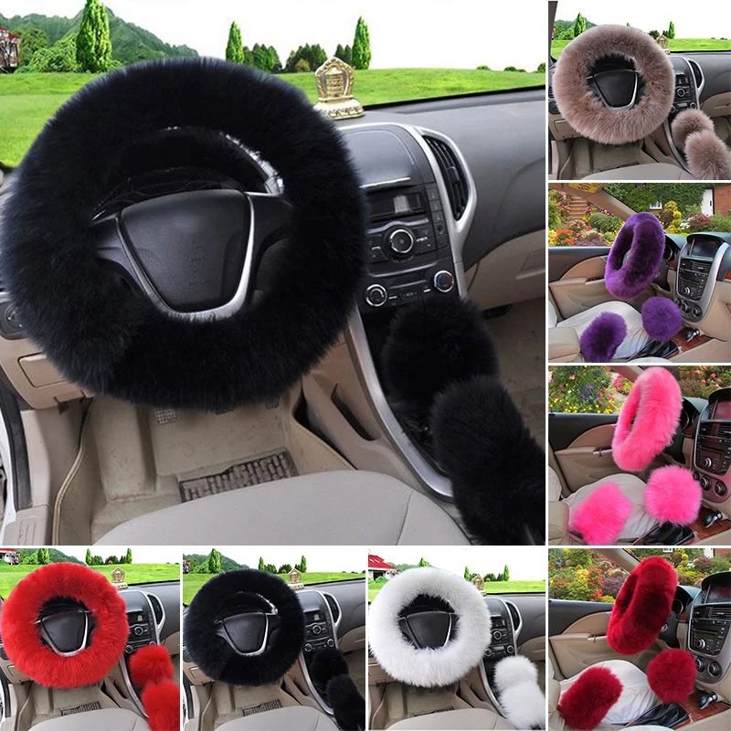 Special Offer Długi pluszowy ciepły pokrowiec na kierownicę wełniany hamulec ręczny akcesoria samochodowe Auto Fur 3pc Discount 45% Today!